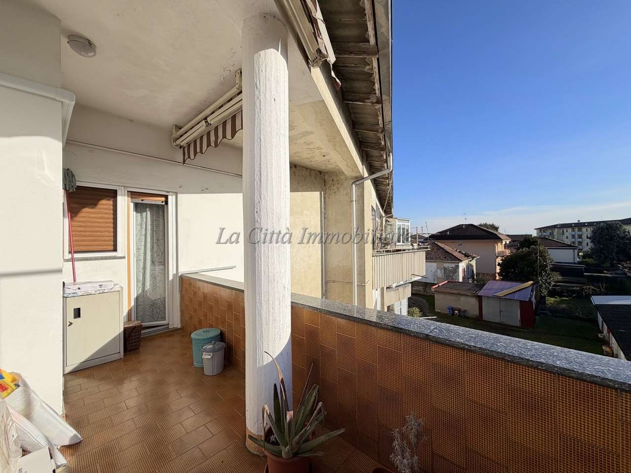 L’immobile è composto da ingresso, cucina abitabile, soggiorno, due camere da letto, bagno finestrato dotato di doccia, ripostiglio e ampio terrazzo.