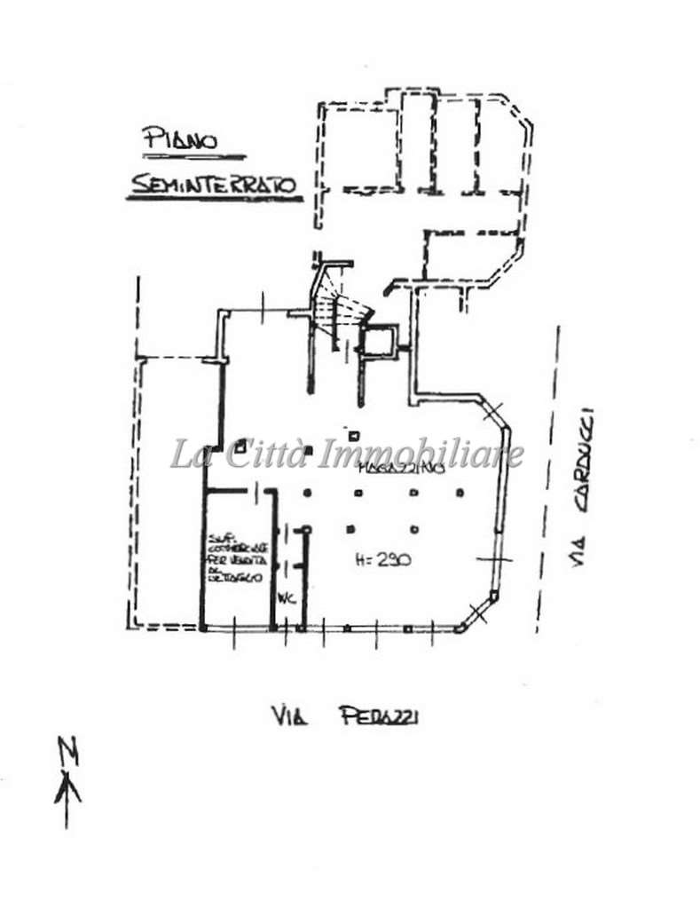 SAN MARTINO - Via Carducci, a pochi passi dal Centro Storico, proponiamo magazzino di circa 168 mq sito al piano seminterrato, composto da ampio locale con bagno, oltre ad area destinata alla vendita (uso commerciale) e autorimessa doppia attigua.